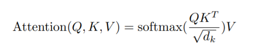 쿼리와 키를 행렬곱 연산한 후 k의 차원의 제곱근으로 나눠 스케일링 한 후 소프트맥스 함수를 취해 쿼리의 키에 대한 확률값을 구해준다. 그리고 그 값에 V를 곱해줌으로써 어텐션을 얻을 수 있다.