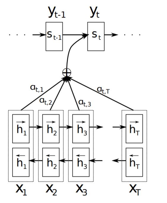 이를 해결하기 위해 소스 문장을 하나의 벡터로 압축하지 않고 소스 문장에서의 출력 전부를 매번 입력으로 받아 타겟텍스트로 출력할 수 있다.
