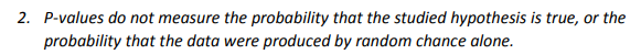- p-value를 통계적 유의성확보를 위한 도구로 사용하되, 이를 실험의 중요성을 측정하거나 가설을 참이라고 주장하기 위한 절대적인 지표로 보지는 말라는 것이다.