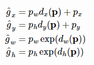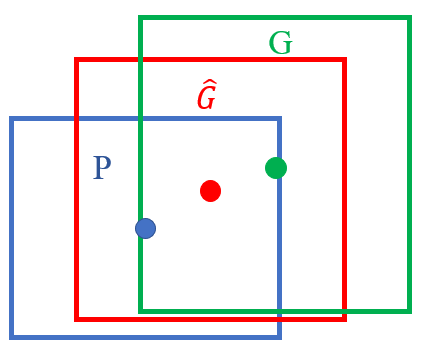 우리는 우리가 예측한 위치인 P가 실제 위치인 G와 최대한 가까워지도록 네개의 데이터를 예측해 조정해야한다.