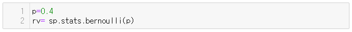 우선 예시에서 확률변수가 봤던 분포값이 맞는지는 다음 코드를 통해 알아볼 수 있다.