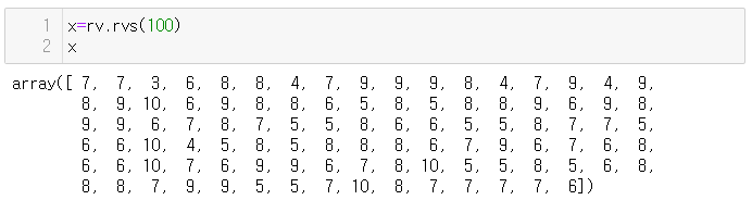 이제 해당 분포를 갖는 무작위 변수를 100개 만들어보자.