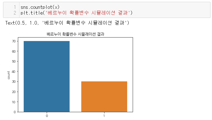 - 설정한 확률변수 1의 확률분포와 동일하진 않지만 유사한 분포의 시뮬레이션이 나오는 것을 볼 수 있다.