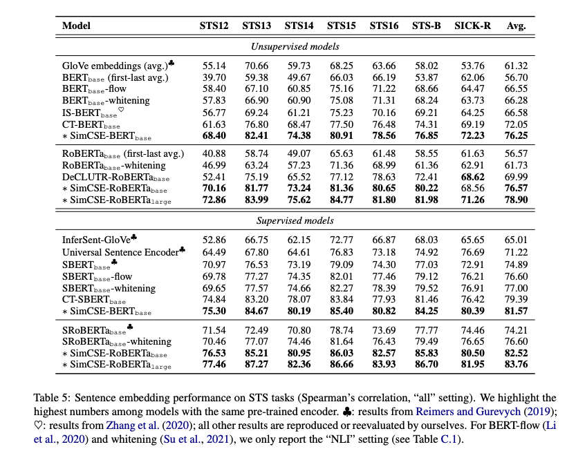 - contrastive learning을 한 IS-BERT, CT-BERT, DeCLUTR 보다도 성능이 좋음