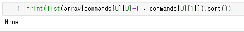 이는 sort가 리스트의 메소드인데 위의 코드에서 슬라이싱된 리스트는 조회된 리스트이지 객체로서의 리스트가 아니기 때문에 None을 반환한다.