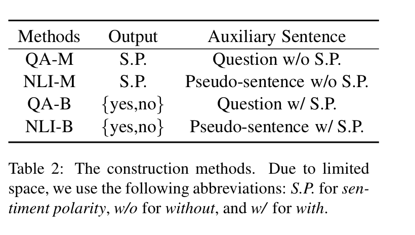 NLI와 QA-B의 형태는 input값에 감성 라벨을 아예 포함시킨다. QA-B의 예시만 하나 들어보자.